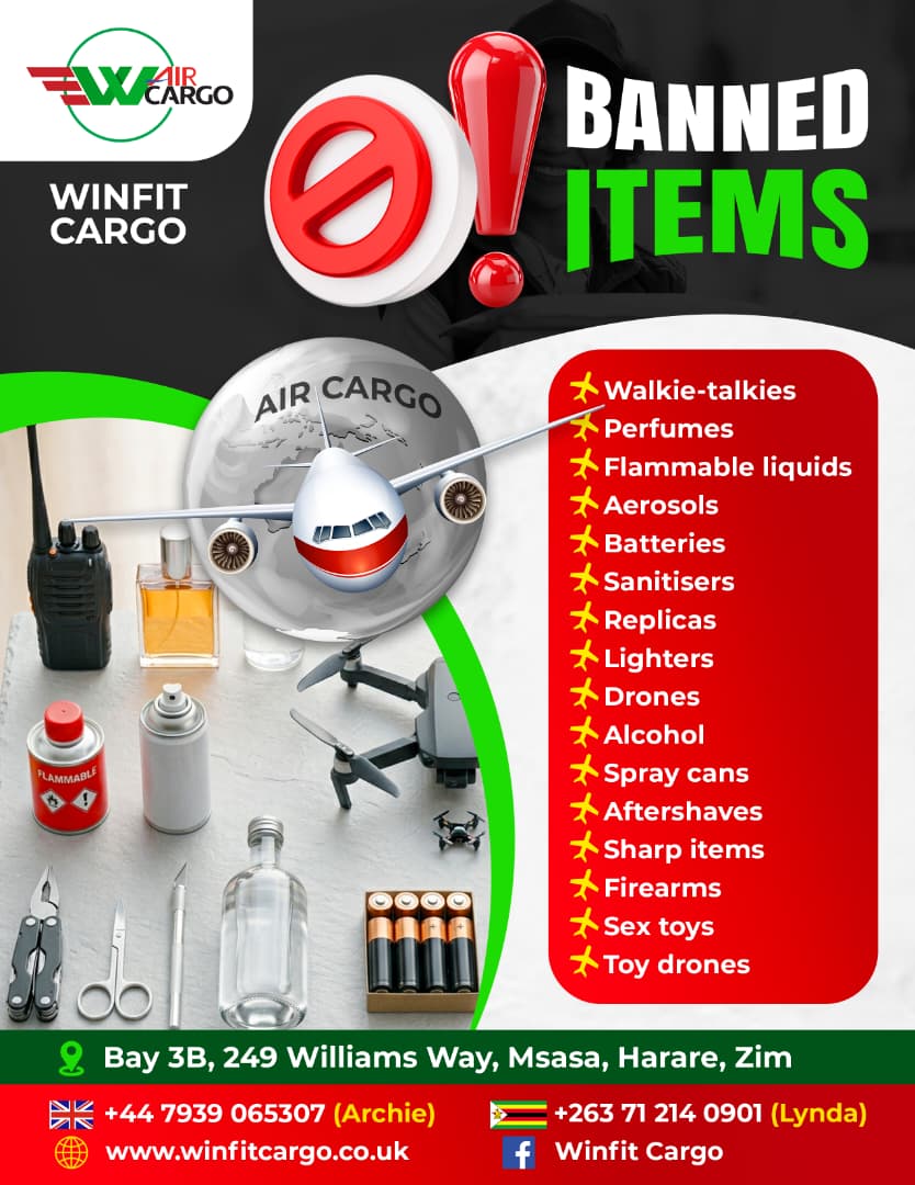 We run a weekly cargo service every Friday from UK to Zimbabwe .We offer a service to Zimbabwe based customers whereby they can order stuff online in their names and get it delivered to our address (Your Name ,C/o Winfit Cargo,44 Gilmore close,Slough,SL37BD).Customers should never use our name/s at any stage when ordering their stuff as that would create confusion .We’ll put together the goods and send to Harare .We charge £11/kg inclusive of customs duty (CHARGES ARE CALCULATED ACCORDING TO THE HIGHER OF ACTUAL WEIGHT OR VOLUMETRIC WEIGHT).We calculate the volume by multiplying the length, width and heightthen divide the result by 6000. Minimum weight is 5kg and minimum charge is £55. There is also a £10 handling and packaging charge per each shipment.